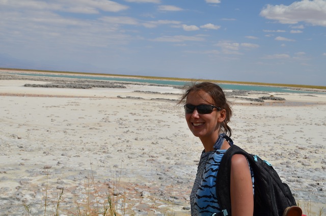 San Pedro is a charming little, dusty town. Well, it’s in the middle of a desert. With its dusty, sandy roads and little adobe houses it could be a perfect set for a western movie. It is a tourist hub but you could hardly tell. The streets aren’t crowded and the restaurants maintained their local character. You tell you are in Chile; the tourist infrastructure is good and access to tourist information is very well organized. The locals are constantly smiling and they are very keen to give you all sort of information, chat with you and help you with everything you need. The place is in the middle of the driest desert in the world; always sunny and warm. We loved being here, finally at only 2000 meters instead of 4000 above the sea level. We took advantage of being at “a lower altitude” and we rented bicycles. We cycled for 50 km in the driest desert in the world, at midday. At the end it appeared to be (and it was) the best, the cheapest and the most stunning way to see the surroundings. We rode 25 kilometers to Laguna Cejar and back to Sam Pedro. Laguna Cejar is a salty lagoon. Very salty in fact; 8 times more than the ocean. It is like the Dead Sea. We spent time floating in the water and when we got out we were completely covered in salt. Luckily the place is equipped with showers (so nice to see that the entrance fee to the Laguna is used properly). We stayed a bit on the nearby beach and walked around to admire the spectacular views of the Lagunas, mountains and the desert. The sun is so strong that you cannot stay here too long, you need to search for a shadow…and it is not easy as you are in the desert. Although biking here was not easy, we really appreciated our choice. On our way back to the town we saw tens of vans with tourist coming towards the Laguna. This means that all the organized tours come here at the same time, give you half an hour or so for a bath and then they departure. We were here with maybe 10 other people, mostly locals and enjoyed our time in almost total peace and quiet. I definitely would recommend you hire a bike but leave early in the morning instead of riding in the midday sun! I also reccomand to bike to Valle de La Luna for a spectacular sunset. It’s only 15 km away from San Pedro and it’s a very pleasant trip done in the evening. Remember to check if your bike lights work properly. Hiring the bikes n San Pedro is not an issue at all. Ciclo Aventura Atacama has a good variety of bikes and a super friendly staff. Also many hostels have a service of bike rentals. As said, you will not have a problem finding a bike here.