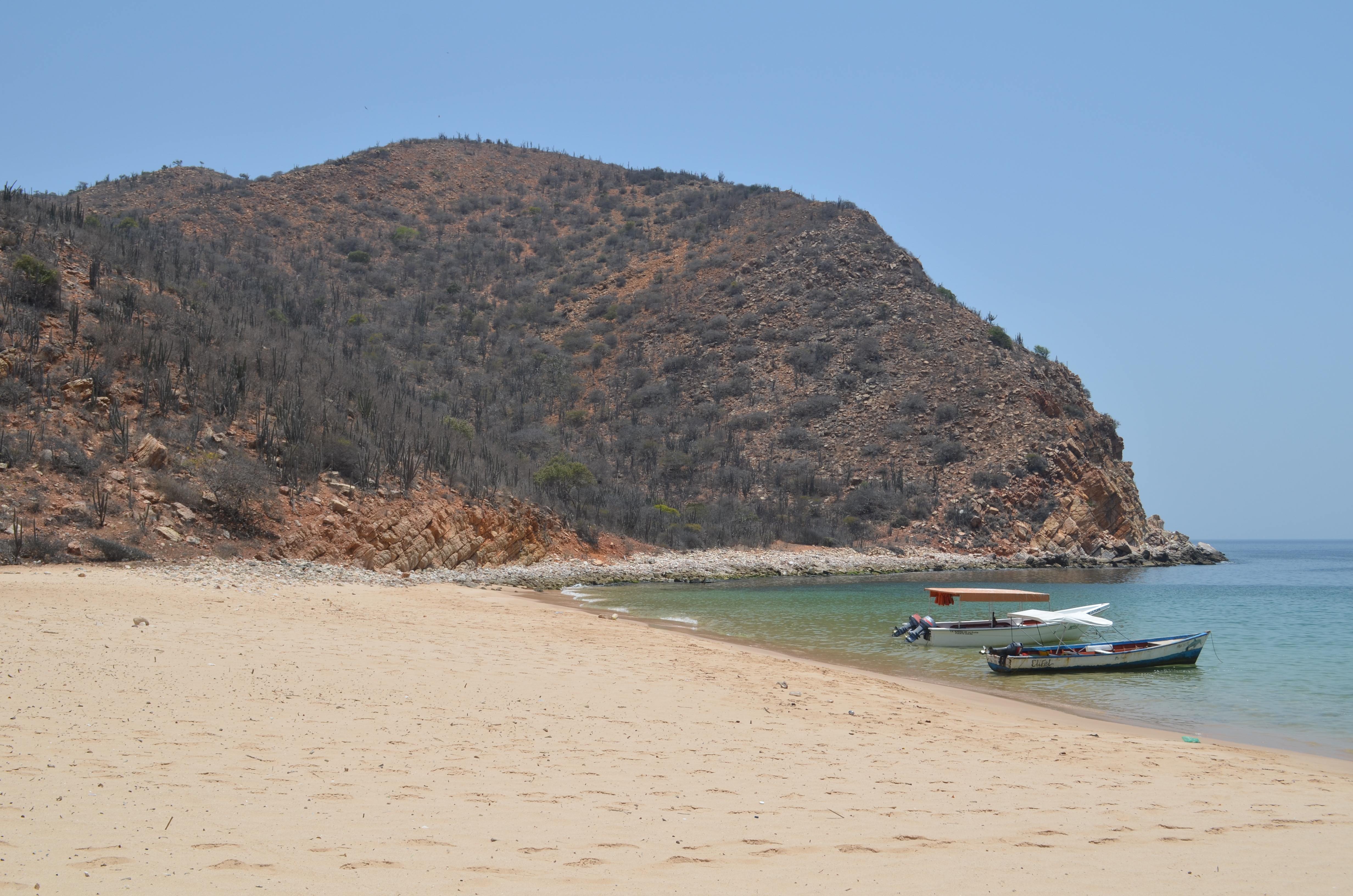 Our trip from Puerto La Cruz to Santa Fe took us 40 minutes and the views from the microbus were spectacular: endless coast with little islands in the middle of the blue ocean. I was surprised how dry the vegetation was. It is true that I arrived at the end of the dry season but I couldn’t have thought that it really doesn’t rain at all. The vegetation dies much like during European winter and the hills turn brown. I was also surprised how easy it was to get to Santa Fe. The little fishing village of Santa Fe not only prides itself on its great fish market but it is also the gateway to some of the most beautiful Caribbean gems.
