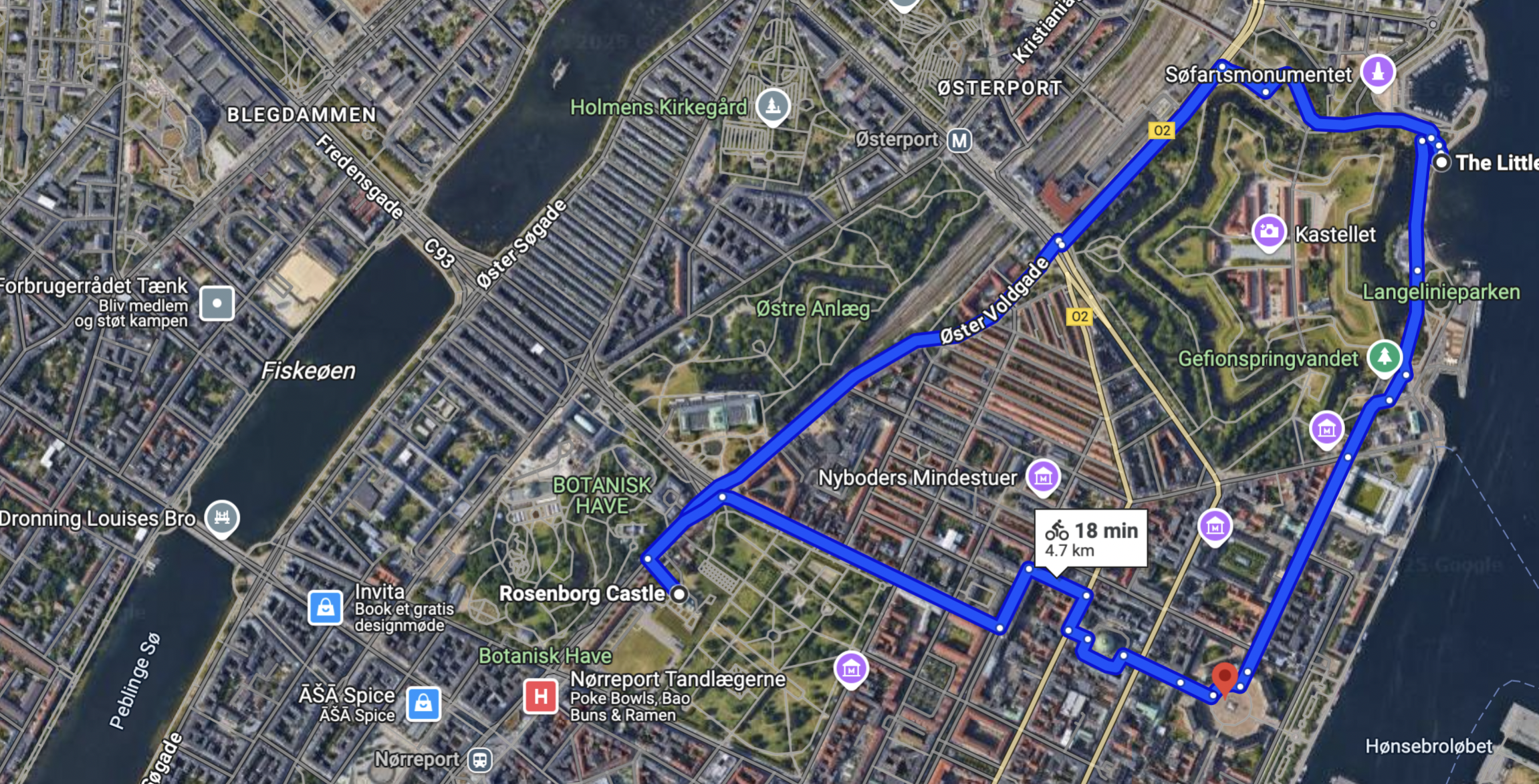 - Passes through Amalienborg Palace, the Little Mermaid, Rosenborg Castle.