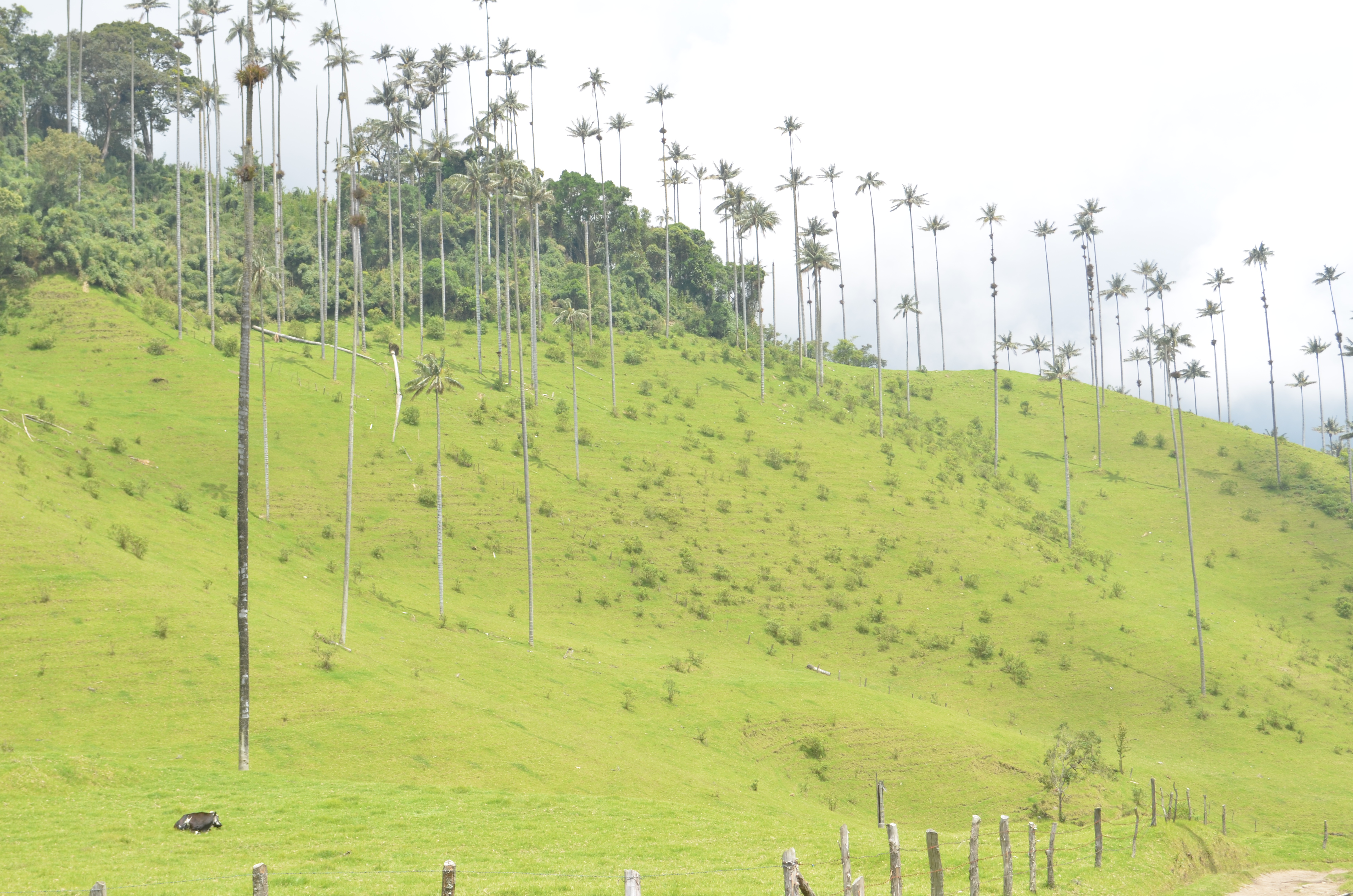 Instead of turning back the same way, I descended on the opposite side of the valley, completing a full loop. This descent is where Cocora Valley truly becomes unforgettable. The mist rolls across green pastures dotted with cows, while the hills are covered in imposing wax palms that seem to defy gravity. The palms rise straight and impossibly tall from the earth, creating a landscape that feels almost otherworldly.