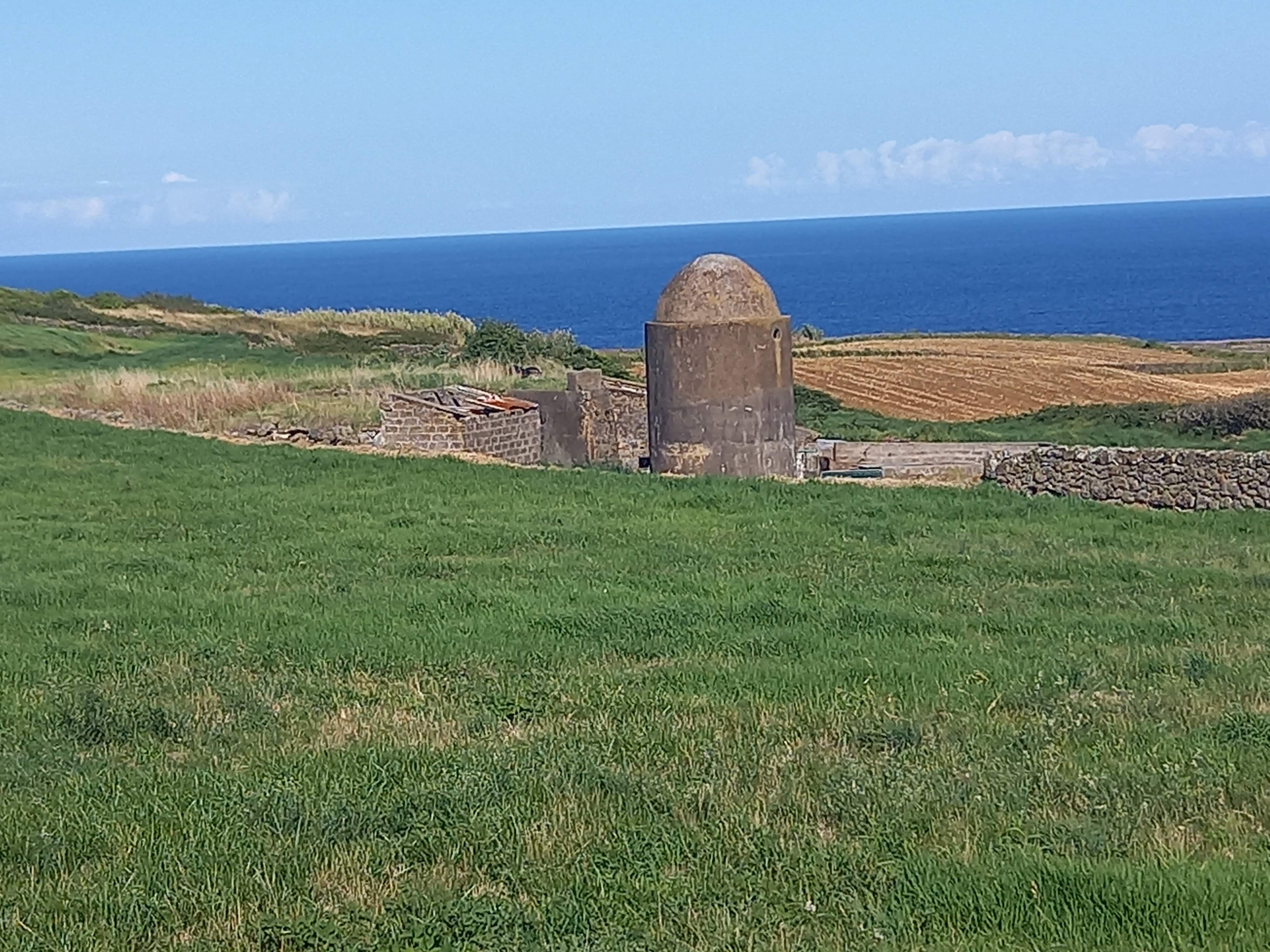 The trail then rejoins the main road, continuing close to the sea until reaching Forte do Pesqueiro dos Meninos, another 16th-century defensive structure with a beautiful ocean backdrop. From here, the path climbs gently inland, passing an old restored watermill and the Arrabalde area, where a small stream once shaped local life.