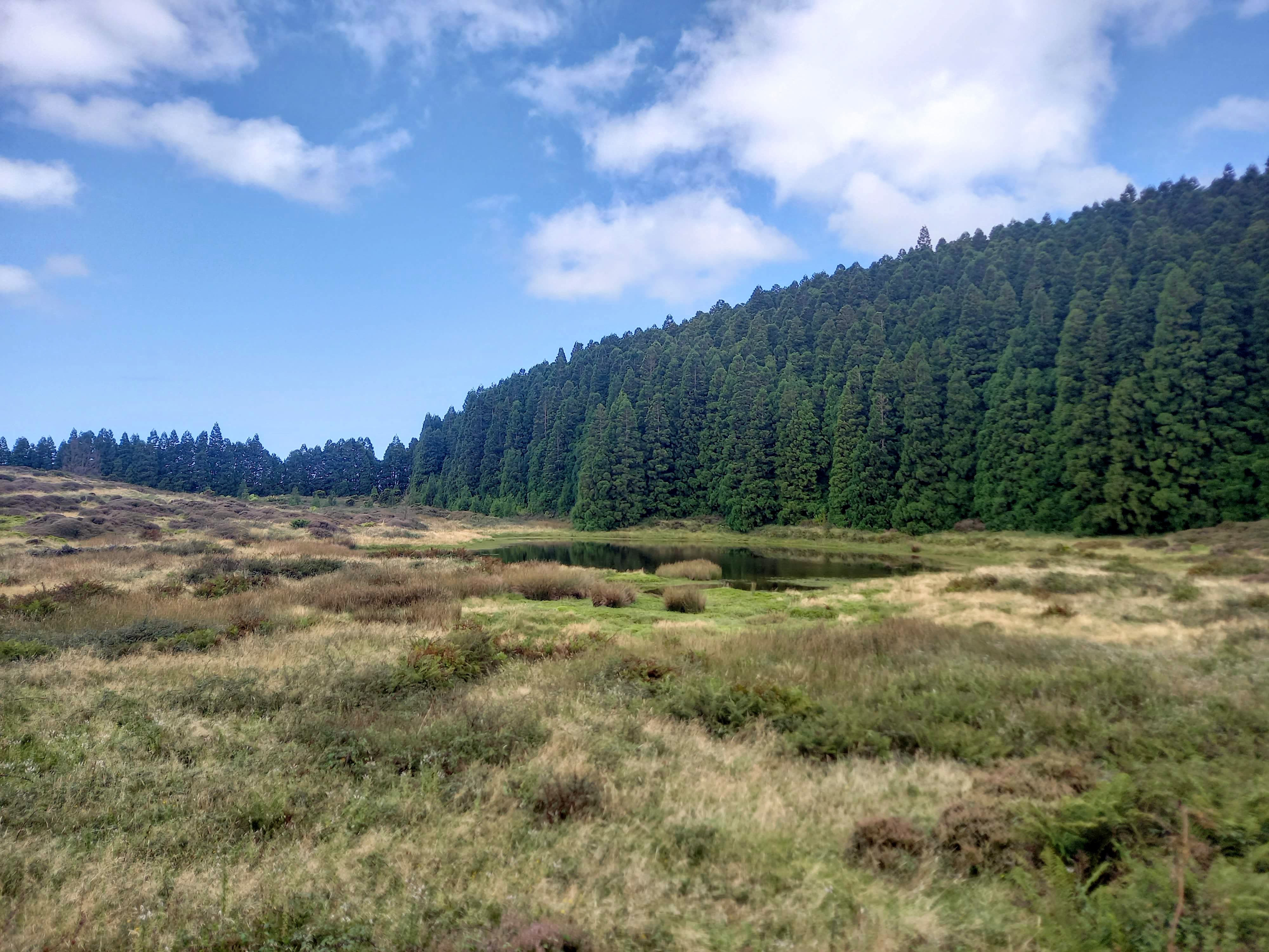 Here the landscape changes completely. The path becomes narrower and surrounded by endemic Azorean flora such as Azorean heather, juniper, blueberry, and native Cape myrtle. It’s a reminder of how unique and fragile this ecosystem is. After a short walk you reach the Lagoinhas do Vale Fundo, a set of small lakes hidden in the forest. Only one of them holds water year-round and serves as an important resting point for migratory birds.